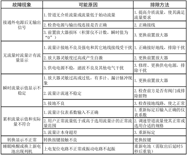 1.在運(yùn)行過程中若發(fā)生流量計(jì)顯示值與實(shí)際流量示值不符合時(shí),應(yīng)首先檢查用戶 的管道系統(tǒng)是否符合流量計(jì)的安裝要求。
