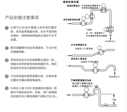 1.系統(tǒng)正常運行時測量管必須保證滿管,如出現(xiàn)非滿管,流量計就不能正常工作,讀數(shù)可能是忽大忽小的隨機數(shù)。
